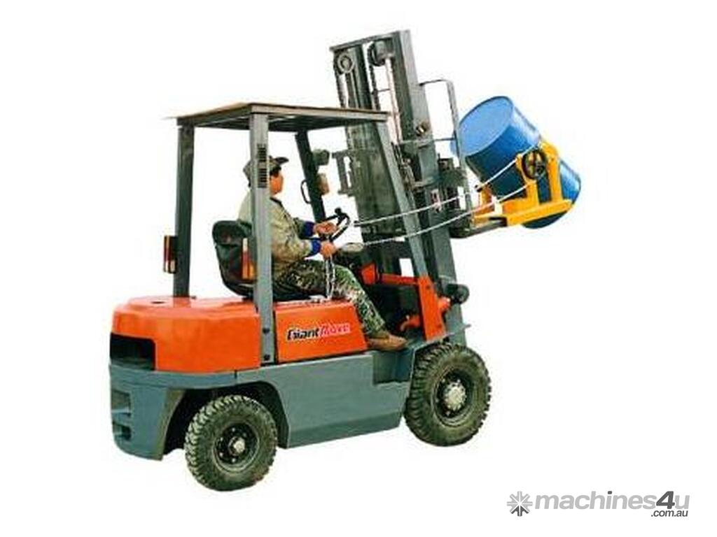 Forklift drum rotator is designed to fit on just about any forklift and give you the ability to safely lift and rotate (tip) 205 litre and 44 gallon drums. The operator can even tip using the long chain back in the forklift cabin