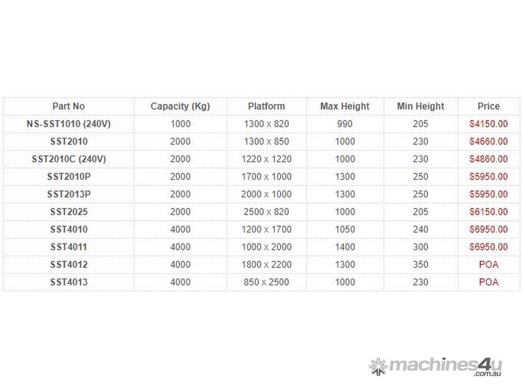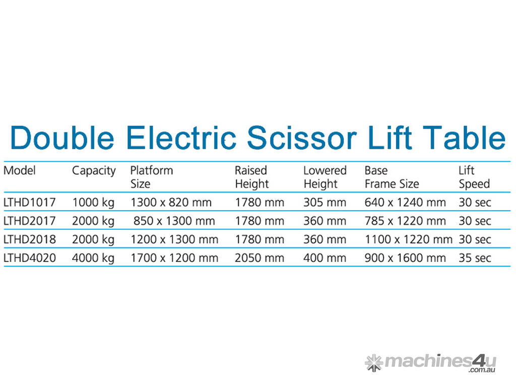 Double Scissor Electric Lift Table 1000kg - 4000kg : $4,150 AUD ($4,565 Inc. GST)