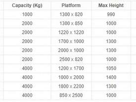 Part No Capacity (Kg) Platform Max Height Min Height Price