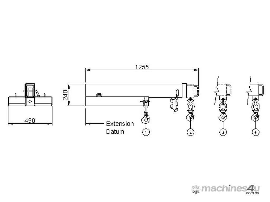 EW-SJ4500 Fixed Jib (Short) is designed as an affordable general purpose forklift Jib able to manoeuvre in confined spaces, with a 1.92m reach when fully extended.