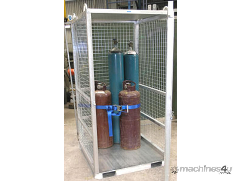 Secure gas cylinder storage cage, suitable for building sites and mines. Fitted with 4 point crane lift and fork pockets under.